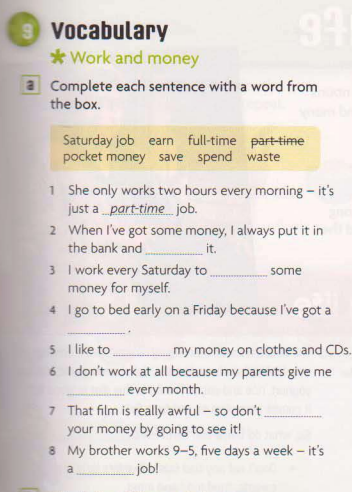 English 26/11/2025 Տրդատ Գաբոյան English 7 1.part-time 2.save 3.earn 4.saturday 5.spend 6.pocket money 7.waste 8. full-time